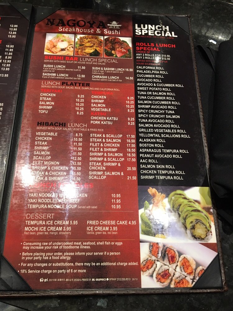 The restaurant is also family-friendly, making it a great place for groups or casual outings. Whether you dine in or opt for takeout or delivery, you can expect a quality experience at Nagoya Steakhouse and Sushi.